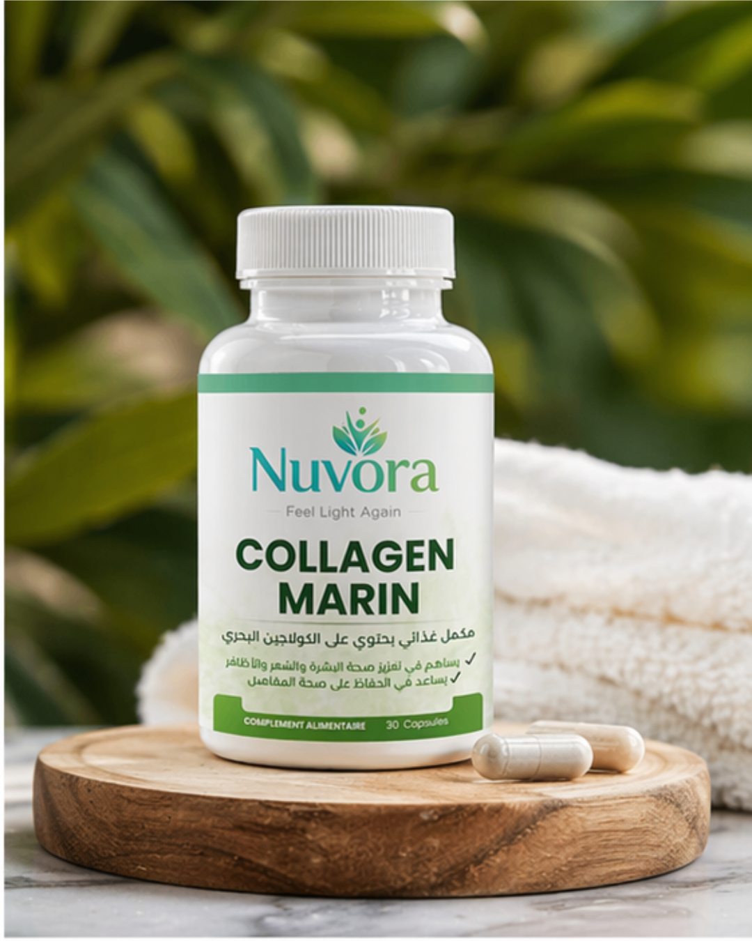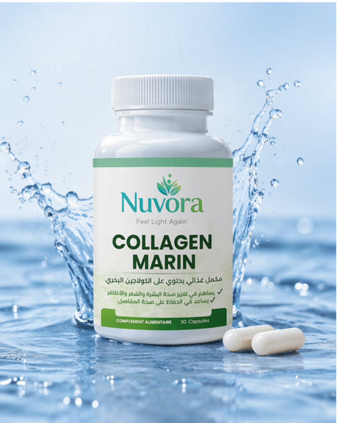 ستحبين كيف يعيد لكِ NuVora Collagen Marin إشراقة شبابك، مما يجعلك تشعرين بالخفة والثقة في كل لحظة.